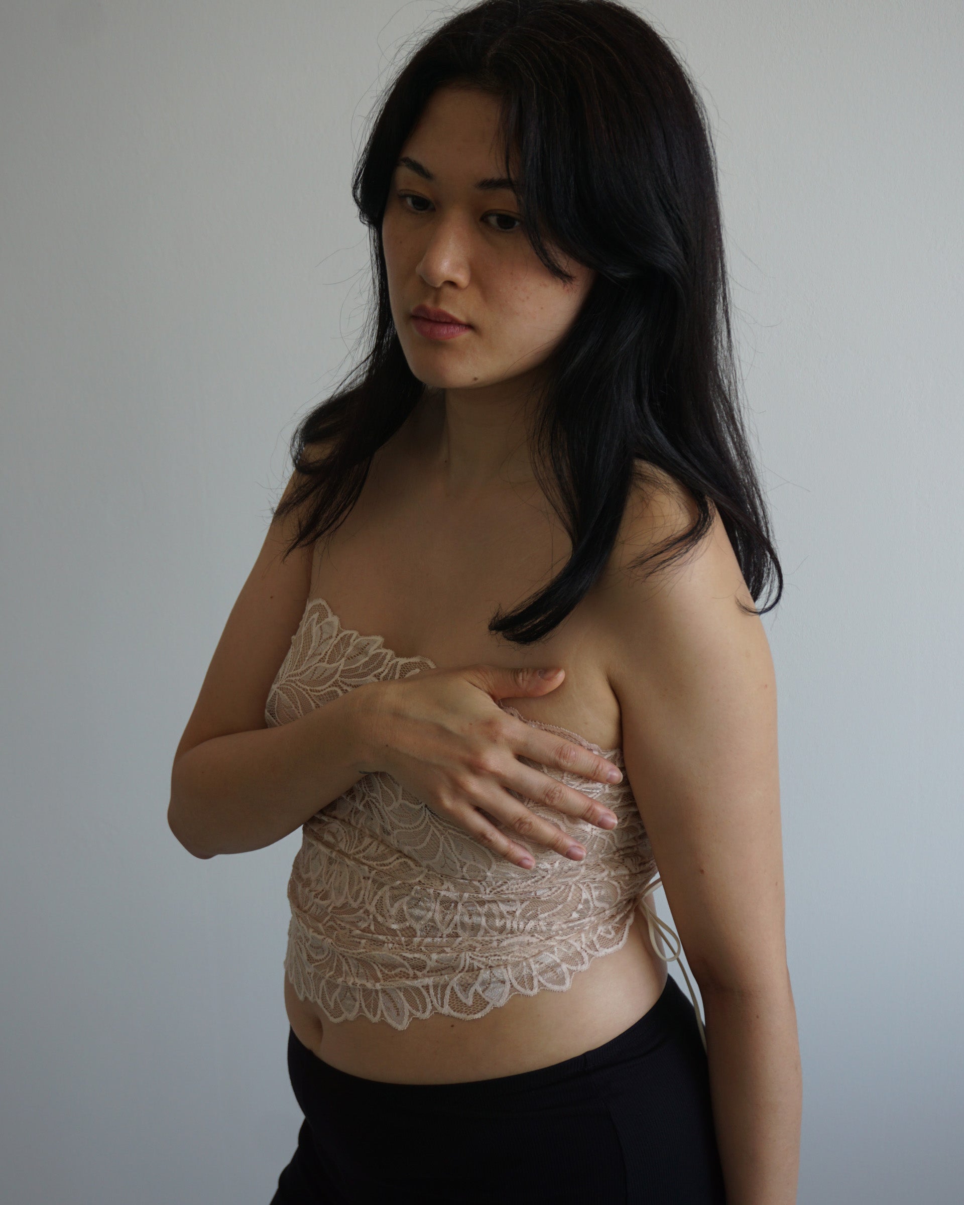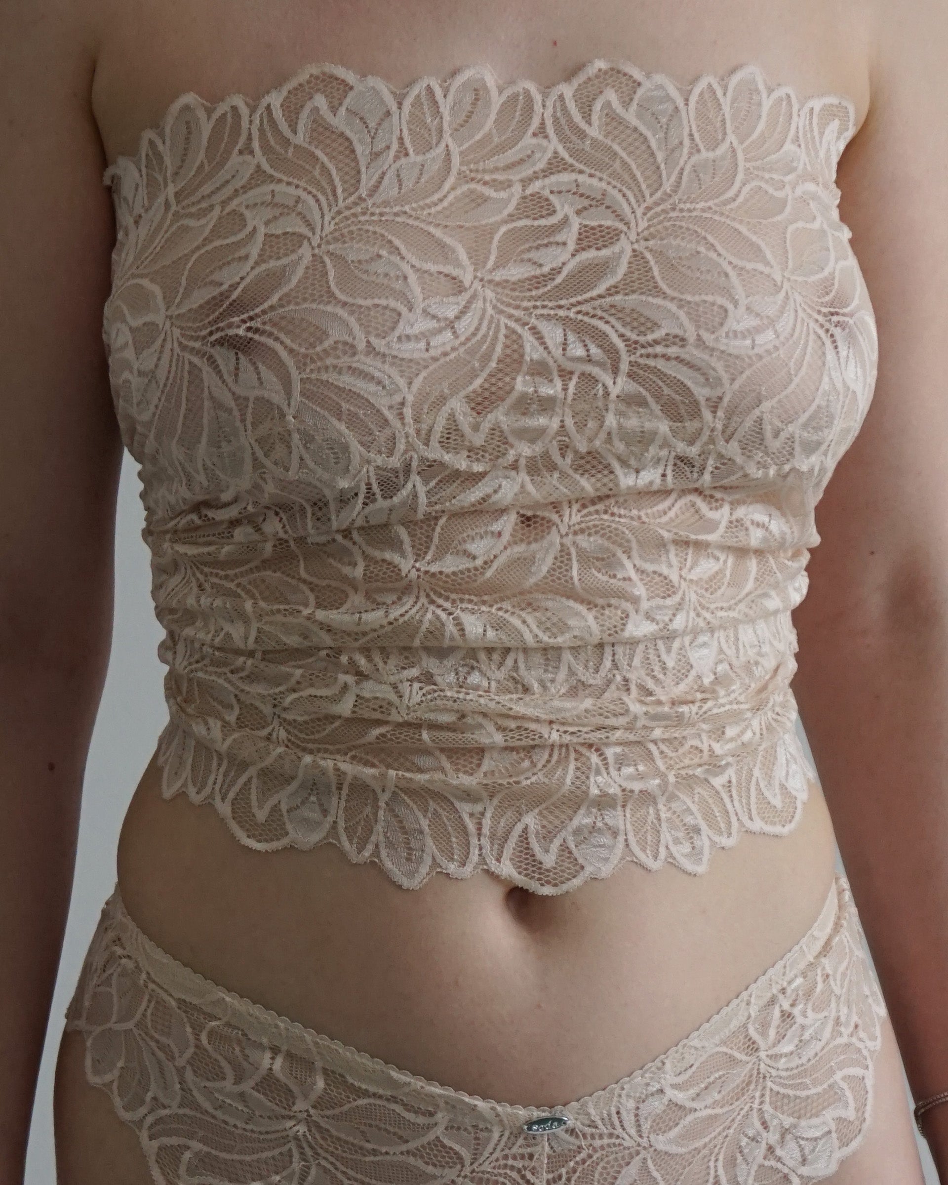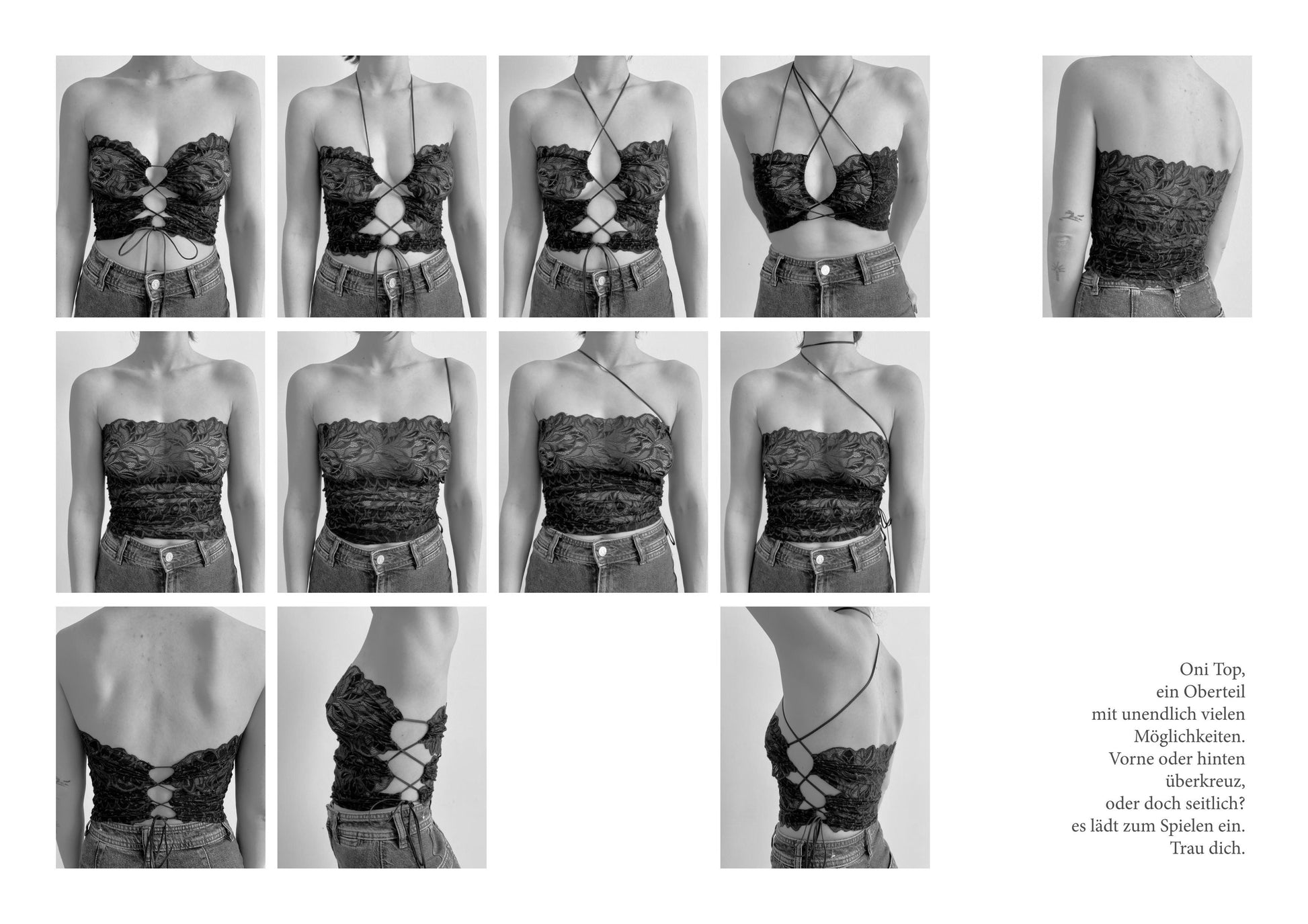 Bei Zwischengrößen kommt's auf deine Vorliebe an: für eine engere Schnürung und damit mehr Spitze, die die Haut bedeckt, empfehlen wir das größere Top. Für mehr Haut und eine weitere Schnürung sitzt die kleinere Größe besser.