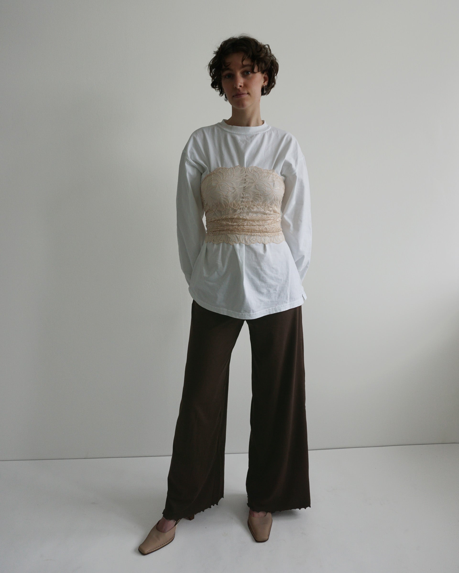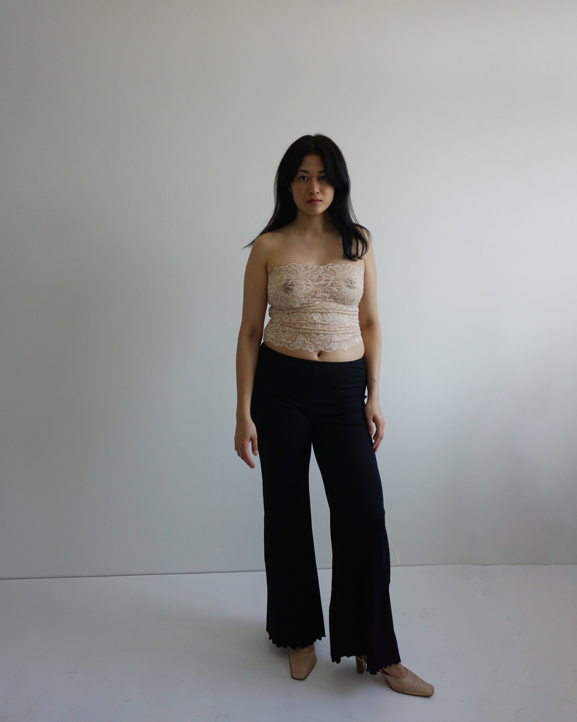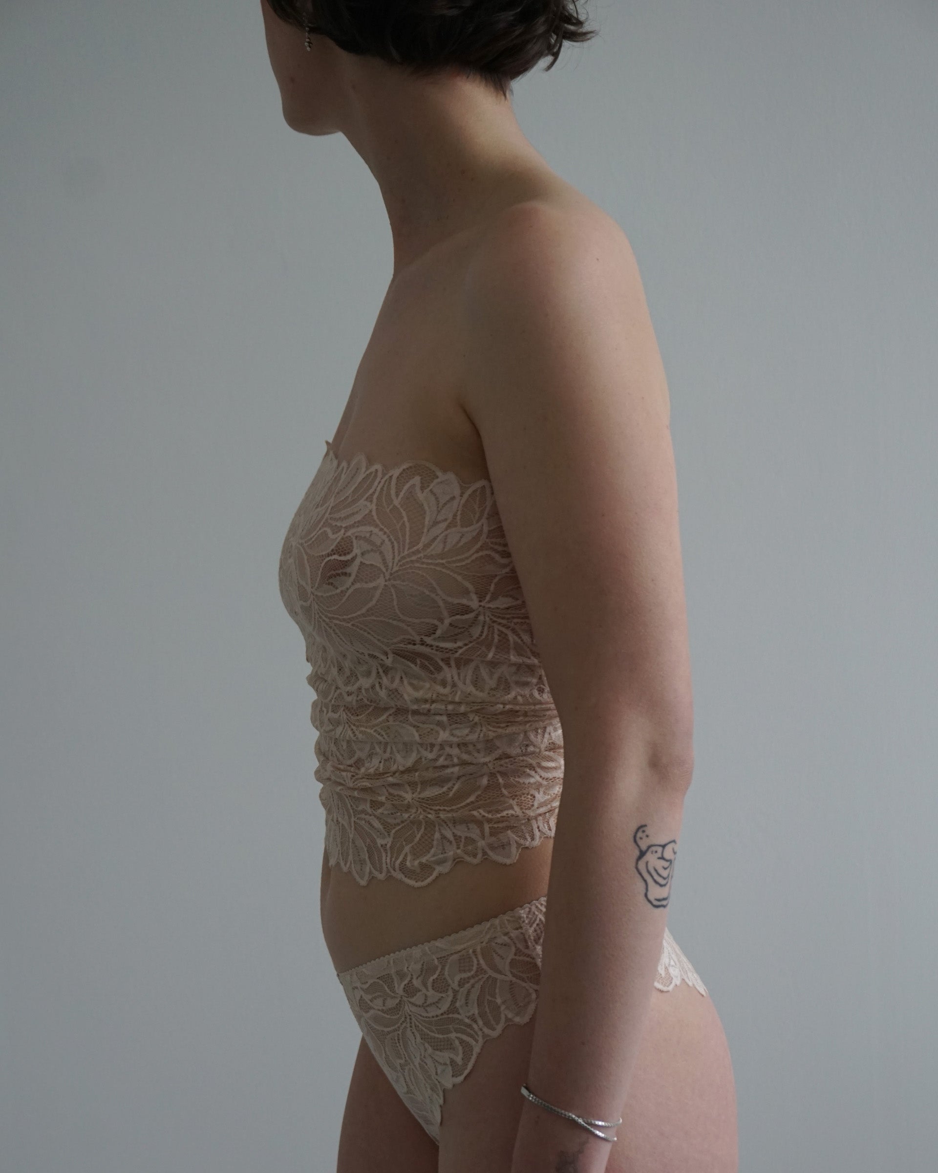 Bei Zwischengrößen kommt's auf deine Vorliebe an: für eine engere Schnürung und damit mehr Spitze, die die Haut bedeckt, empfehlen wir das größere Top. Für mehr Haut und eine weitere Schnürung sitzt die kleinere Größe besser.